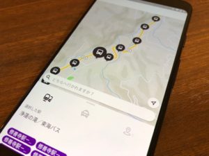 地図でバス停まで表示されるので、まったく不案内な観光地でも安心して移動ができました。