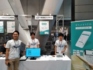 ヘルスケアのブースでは、当社が出資する「㈱バックテック」も元気一杯にサービスをアピールしていました。