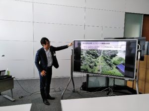 (プレゼンする㈱ブイキューブロボティクス出村社長)