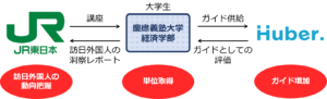 学生ガイドによるインバウンド観光振興をテーマとして、カリキュラムにJR東日本の社員を講師として派遣。
